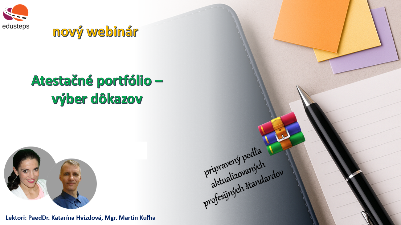 Atestačné portfólio je téma, ktorá stále rezonuje. Webinár je spracovaný podľa nových profesijných štandardov vydaných MŠVVaM SR a zameriava sa najmä na to, ako im porozumieť a ako sa premietajú do štruktúry atestačného portfólia Účastníci získajú jasný prehľad o tom, ako je portfólio usporiadané, aké časti má obsahovať a ako jednotlivé kompetencie tvoria základ pre jeho vytvorenie. Ukážeme si modelovú štruktúru portfólia krok po kroku a poukážeme na najdôležitejšie zmeny, ktoré priniesla novela zákona o PZ/OZ.