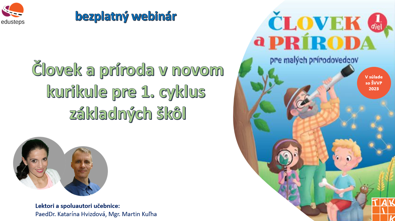 Webinár predstaví novú oblasť Človek a príroda v rámci kurikulárnej reformy pre 1. cyklus ZŠ. Zameriame sa na hlavné zmeny, ciele a kompetencie, ktoré podporujú zvedavosť a učenie objavovaním. Účastníci získajú praktické tipy, ako prepájať témy s reálnym životom žiakov a rozvíjať ich prírodovednú gramotnosť. Súčasťou webinára bude aj predstavenie novej učebnice, ktorej sme spoluautormi, s ukážkami aktivít a možnosti využitia v praxi. Webinár zároveň ponúkne priestor na diskusiu a zdieľanie skúseností z praxe učiteľov.